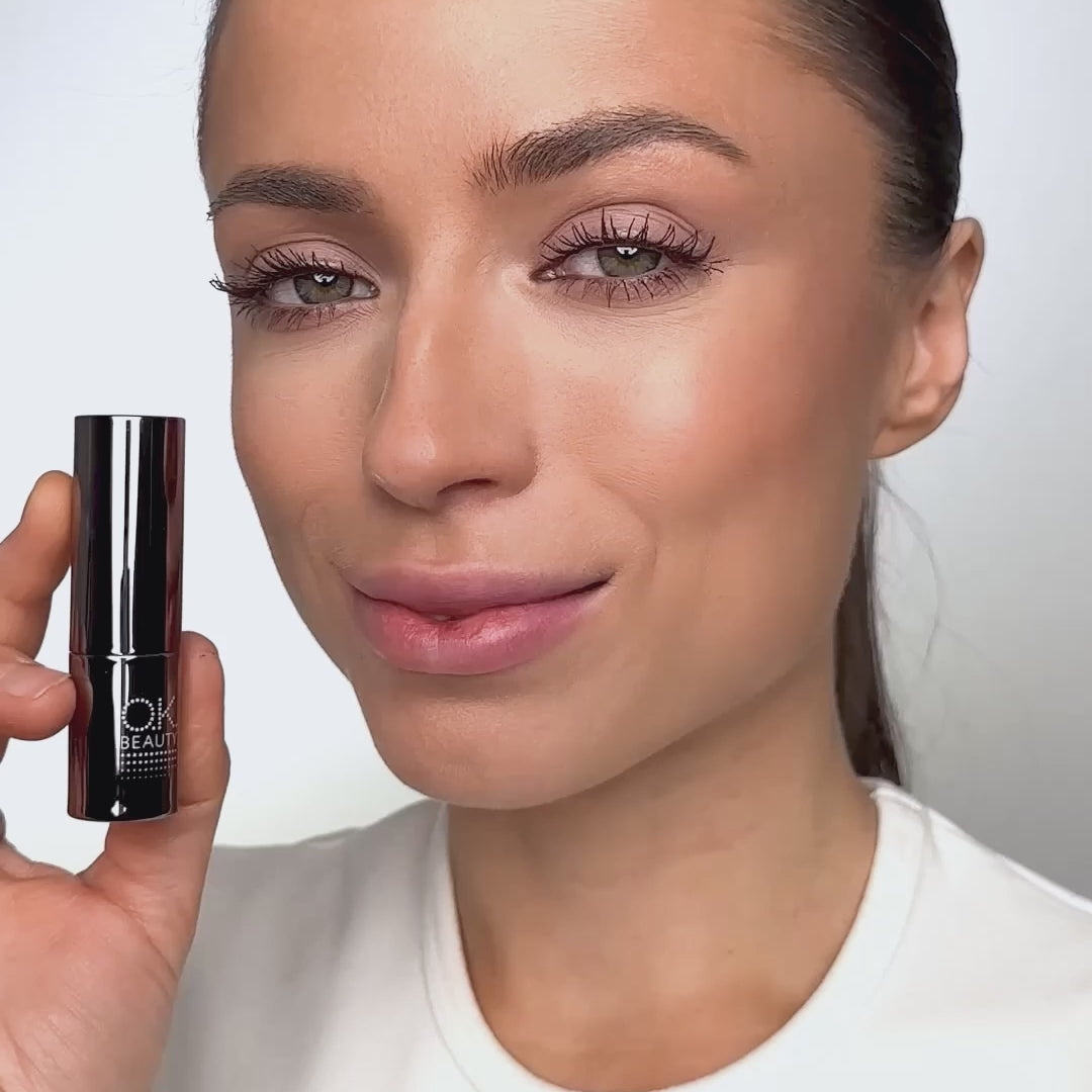 Pre-moisten lips with balm for a smooth, flawless finish. Apply lipstick from the center of the upper lip outward to the corners, and on the lower lip, work from the corners inward to the center.